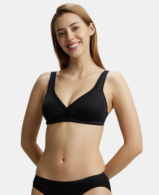 Product Description: Super Combed Cotton Elastane Stretch Fabric Fabric Composition: Nylon and Elastane Full Coverage Bra Wire-free and Non-Padded Broader Cushioned Fabric Strap at Front for Added Comfort Soft and Flexible Reinforced Side Support Provides Better Hold and Smoothening Soft Inner Layer for Better Support and Shape Label Free for All Day Comfort Based on…