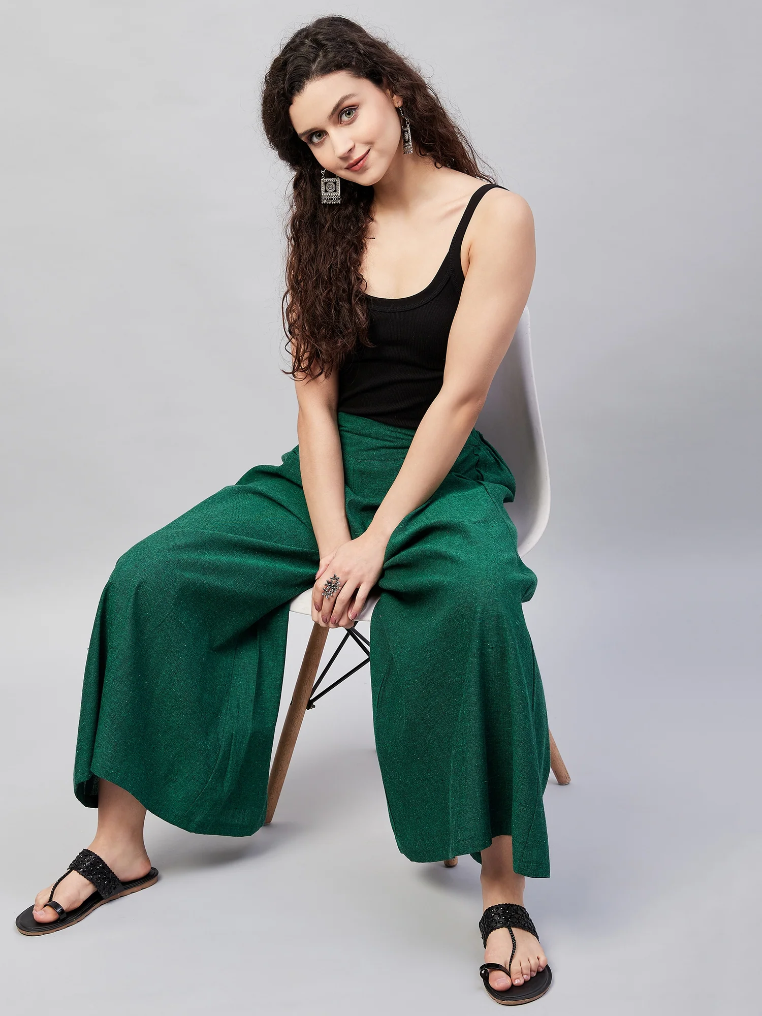 Embrace the spirit of summer with this pair of cool, gray-colored handloom palazzos. These cropped palazzos are made with original cotton fabric and showcase pretty front pleats.