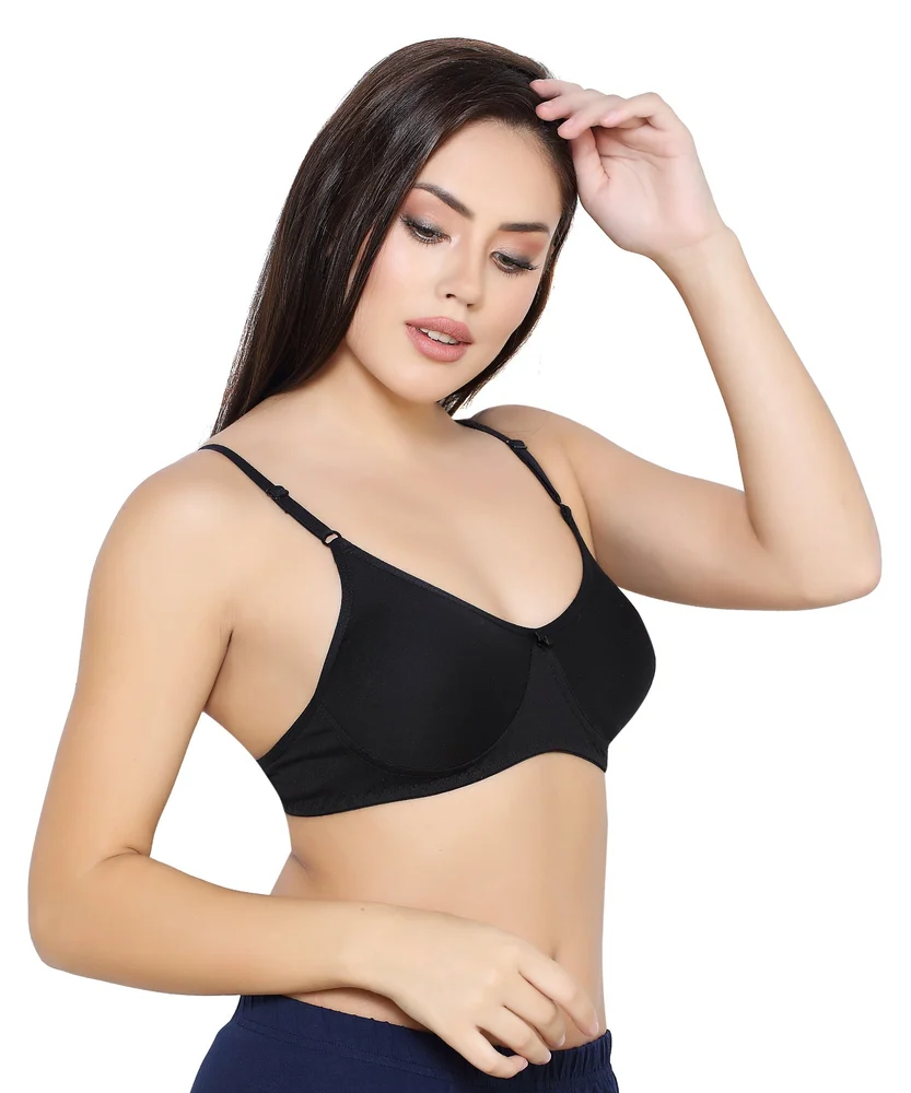 Bra Type: Seamless Fabric    : Pure Cotton Pattern  : Plain Padding: Non Padded Color    : Black Manufacturers: Paras Dyeing And Printing Mills Retailer: Axiogo