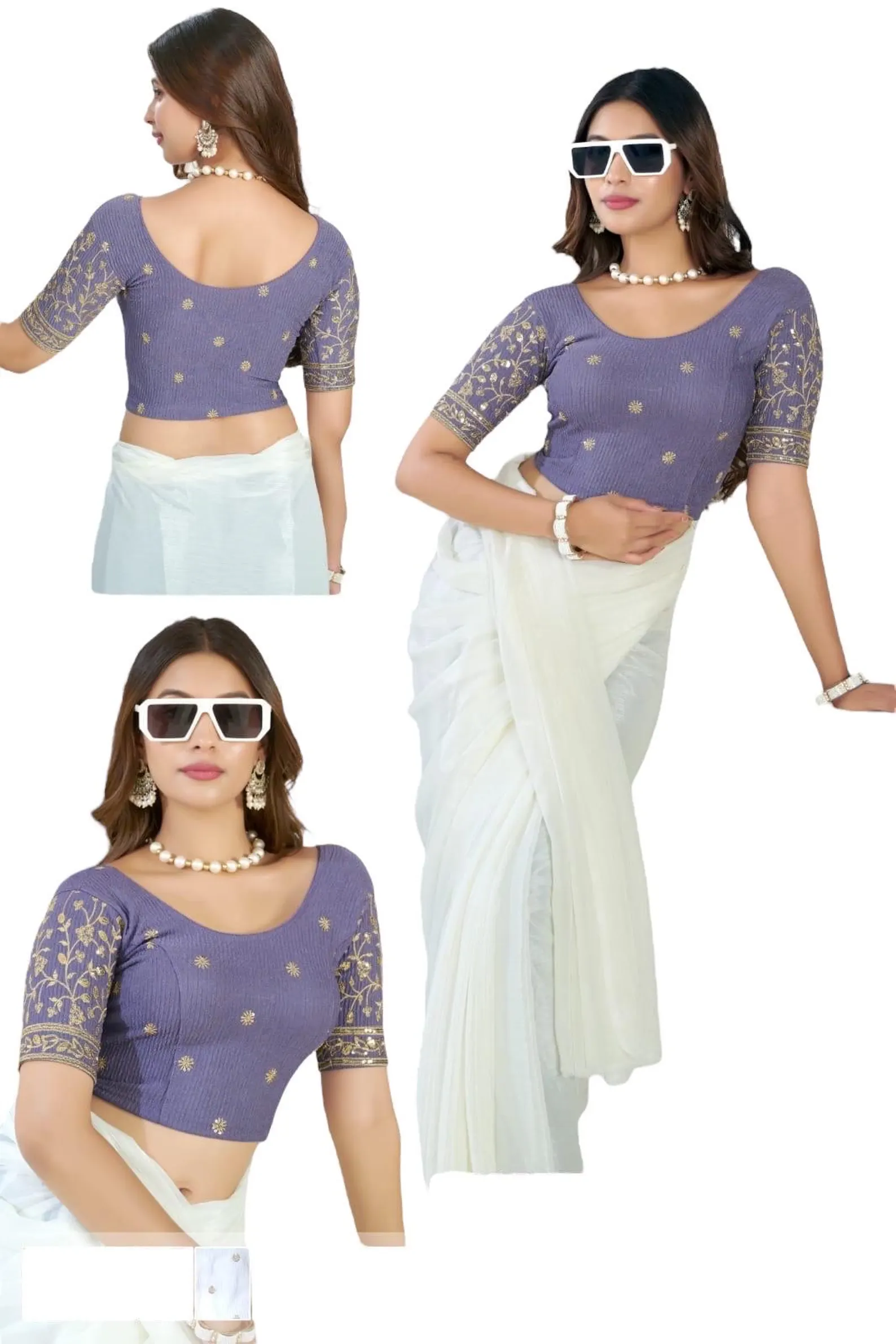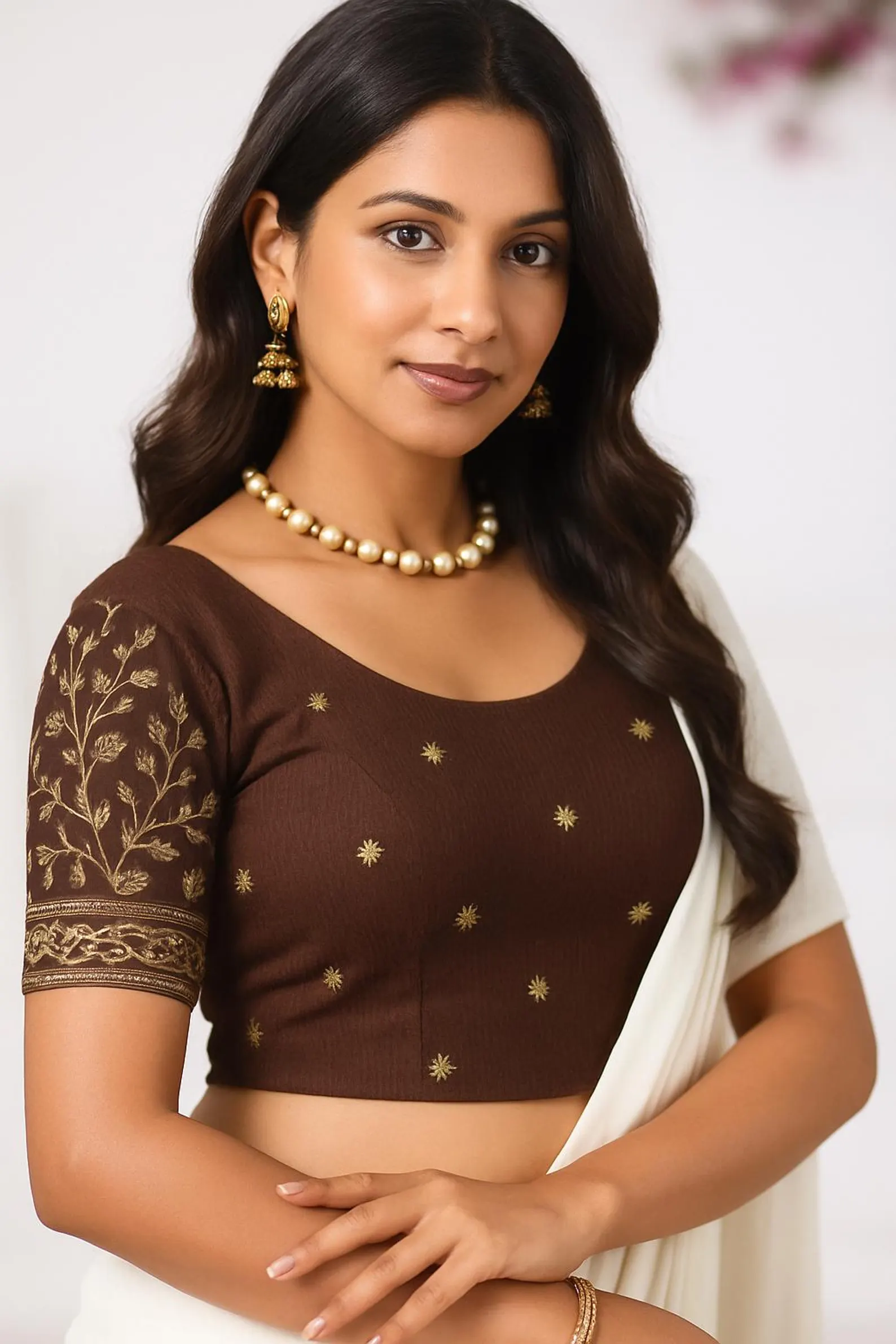 Whether you’re dressing up for a wedding, festival, or special event, this stretchable jacquard blouse brings designer flair without compromising on comfort.