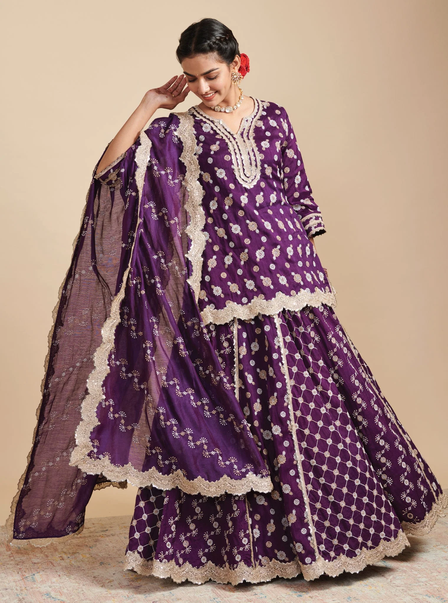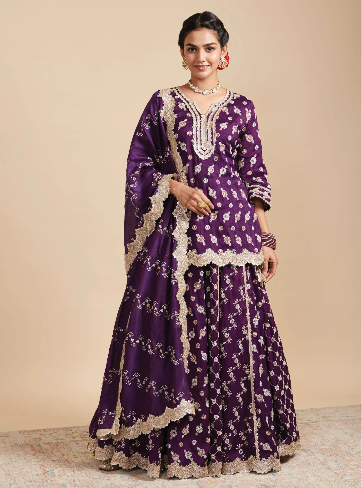 – Skirt Is Adorned With Sequined Gold Gota Lace