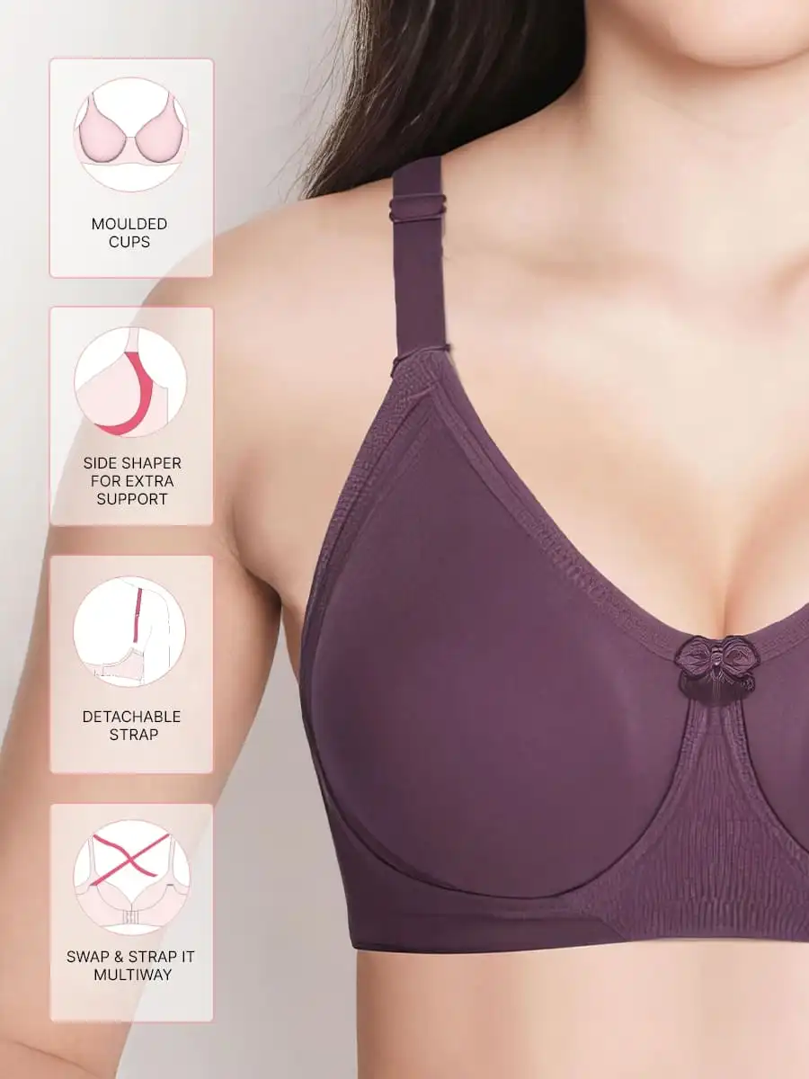 »Susie Berry Conserve Side Encircled 3/4th Coverage Everyday Bra » Non-padded double-layered cups with foam lining in between for apex coverage » Seamless everyday bra with 3/4th coverage » Fully adjustable detachable straps along with a pair of transparent straps » Side encircled cups for better shape and support » 100% Cotton Blend