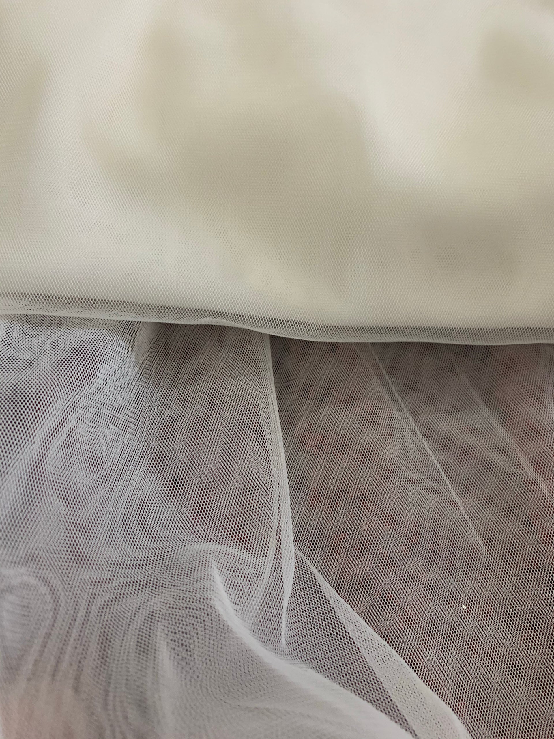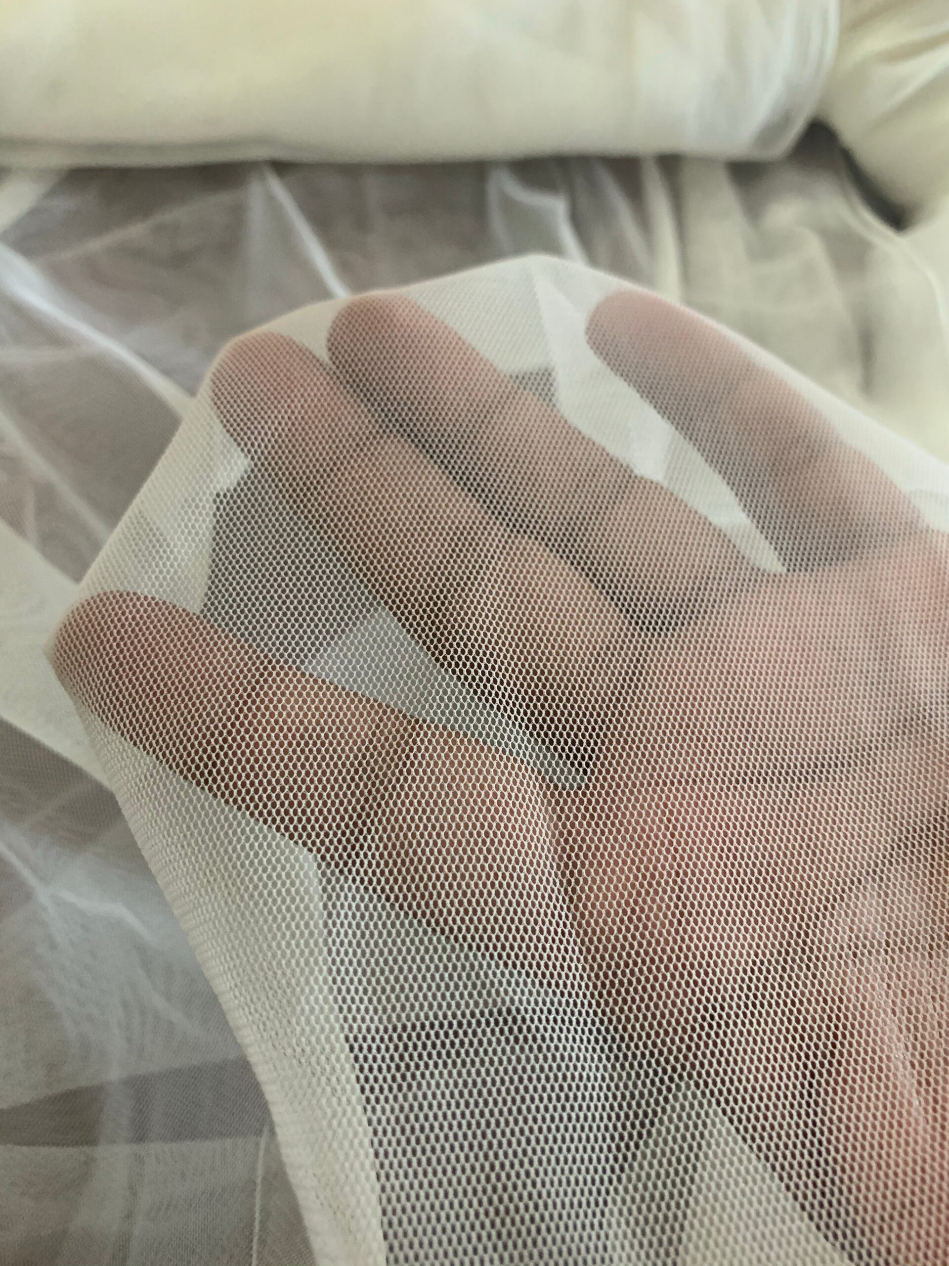 DESCRIPTION Dyeable soft net Width: 44 to 45 inches Length: 2.5 metres Dispatch time for dyeable white is 1 to 2 days, and for colour-customised fabric, it takes 7 to 9 days.
